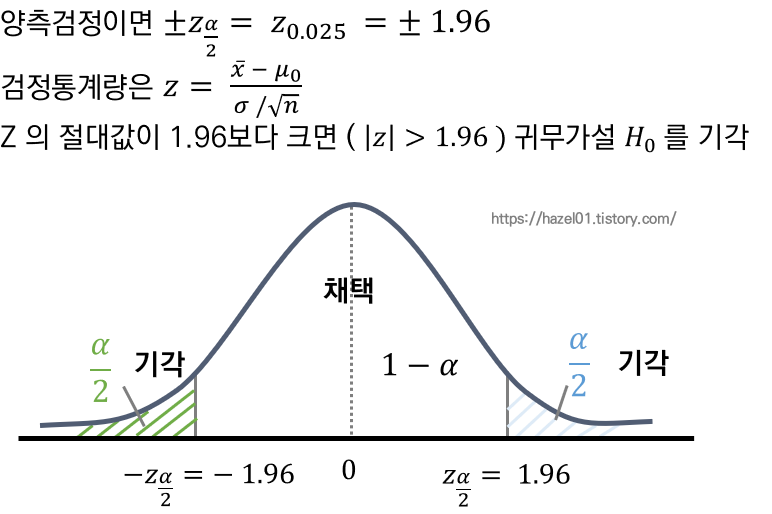 - Z 통계량을 가짐. ~ N(0,1) 정규분포를 가짐