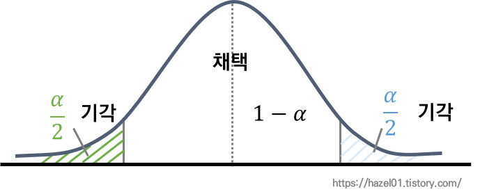 : 기준점을 기준으로 적은것, 많은 것 사이인 1-α에 해당하면 채택하는 것.