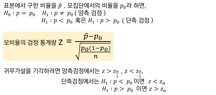 001. 모집단 비율에 대한 가설검정 : 모집단에 대한 특성을 비율로 가늠하여 검정하는 것