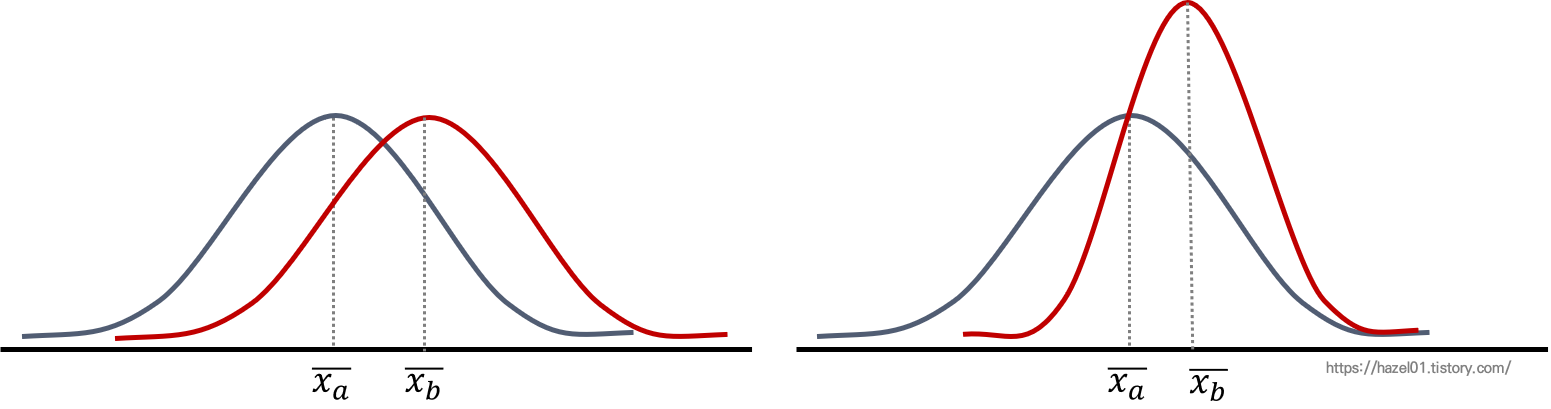 따라서, 분산이 같은 경우와 분산이 다른경우로 나누어 생각해야함.