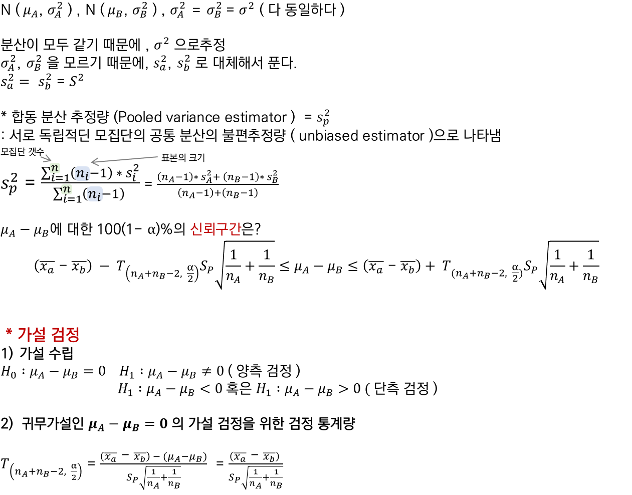 3. 표본의 개수가 충분하지 않고, 모분산이 동일한 경우
