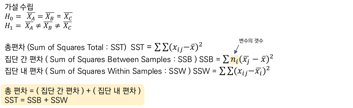 - 각 모집단은 정규 분포여야 하며, 집단 간 분산은 동일해야 한다.