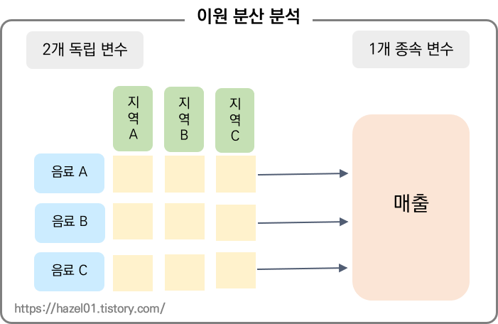 : 두 가지 요인을 기준으로 집단 간의 차이를 조사하는 것.