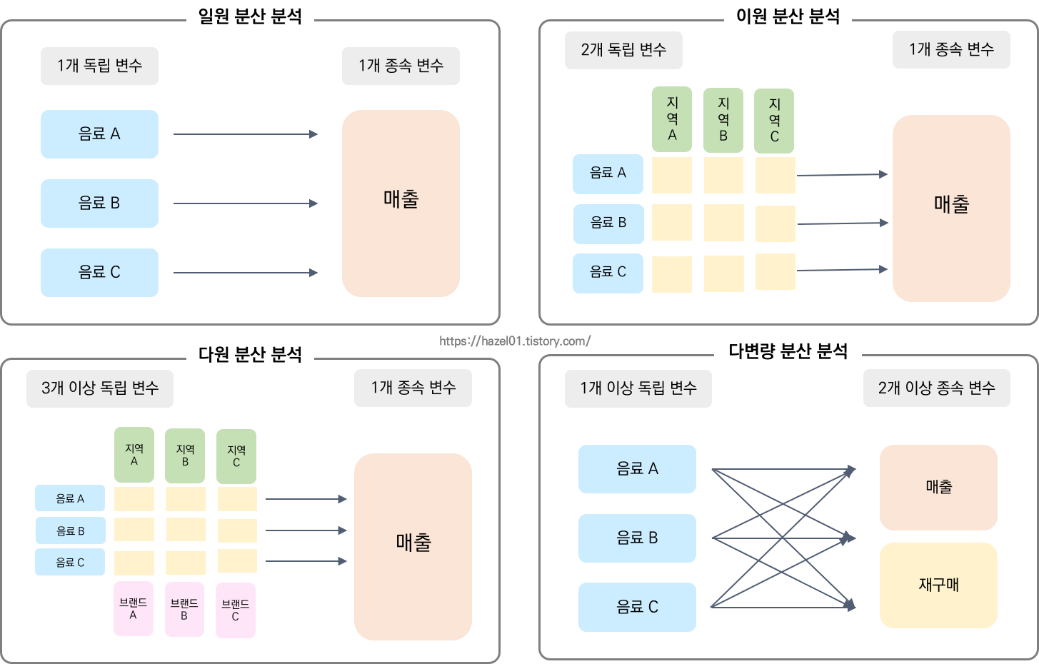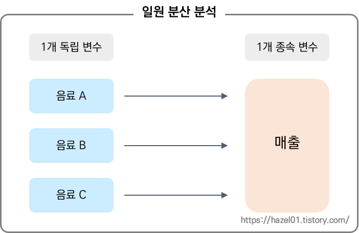 : 하나의 다른 척도를 가지고 보는 것을 일원 분산분석이라고 함.