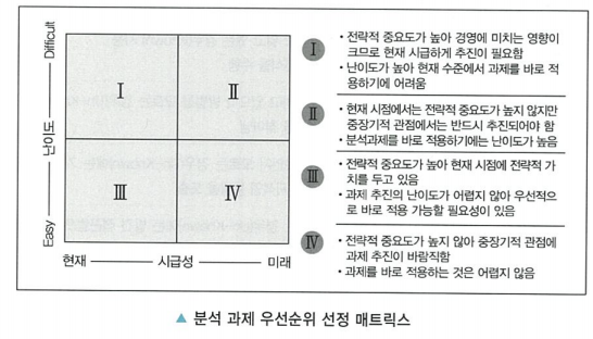 - 가장 우선적으로 분석과제 적용이 필요한 영역은 3사분면이다.