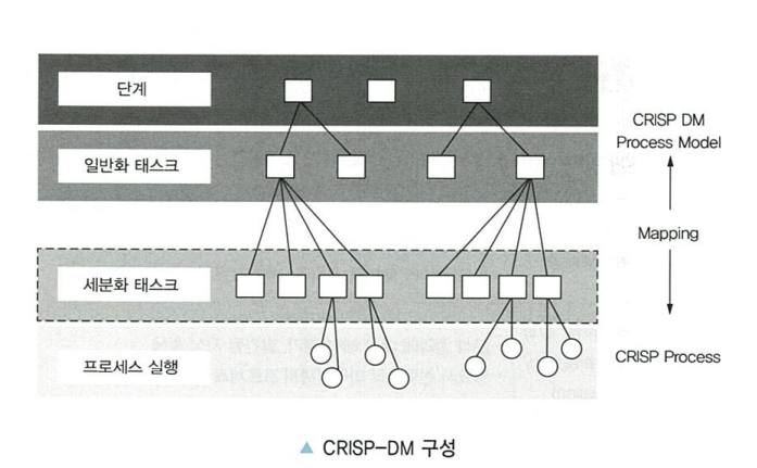 : 비즈니스의 이해를 바탕으로 데이터 분석 목적의 6단계로 진행되는 데이터 마이닝 방법론