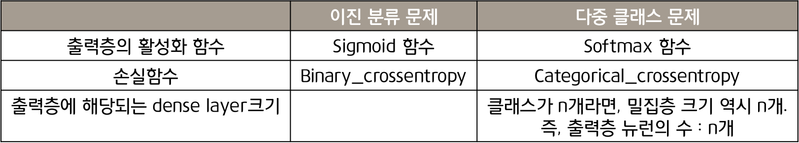 : 마지막 계층은 1개의 노드에 시그모이드 함수를 사용하는 것.