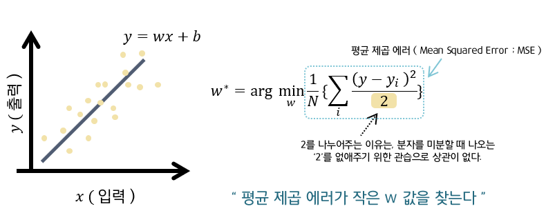 : 각각의 ( x , y ) 와 선형식의 차이 ( 오차 ) 가 최소화 되게 하는 것을 의미한다.