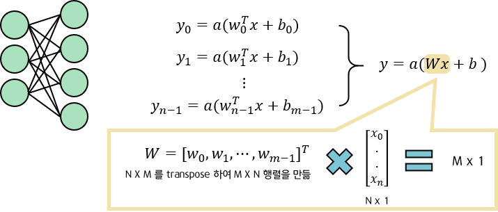 : FC 계층은 여러 개의 뉴런을 한 곳에 모아둔것으로, Matrix 곱셈 연산으로 표현됨.