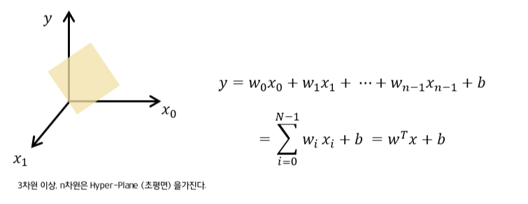 : 변수가 증가할 때마다, 차원이 하나씩 증가하게 된다. 직선 -> 평면 -> 초평면