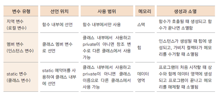 - 클래스 변수, 정적변수 라고 함. ( 인스턴스 변수와는 다르다 )