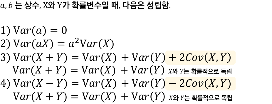 ** 공분산(Covariance : Cov ) : 두개 또는 그 이상의 랜덤 변수에 대한 의존성을 의미함.