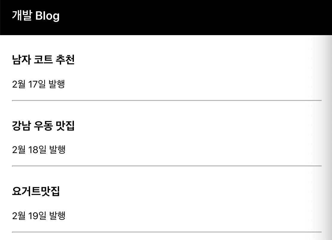 <div className = { posts }> 개발 Blog</div>